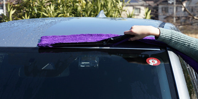 手の届きにくいルーフなどは、クリーンワイパー(別売り)に装着することで、水滴を一気に吸水することができます。