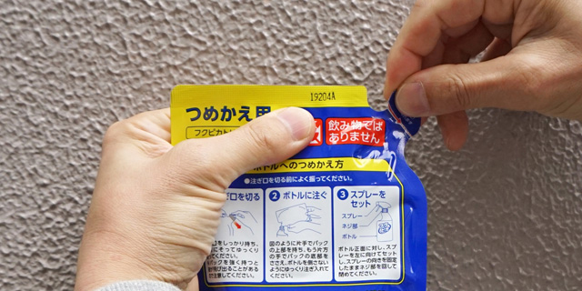 『フクピカトリガー2.0』のフタを開け、ボトルに注ぎいれます。