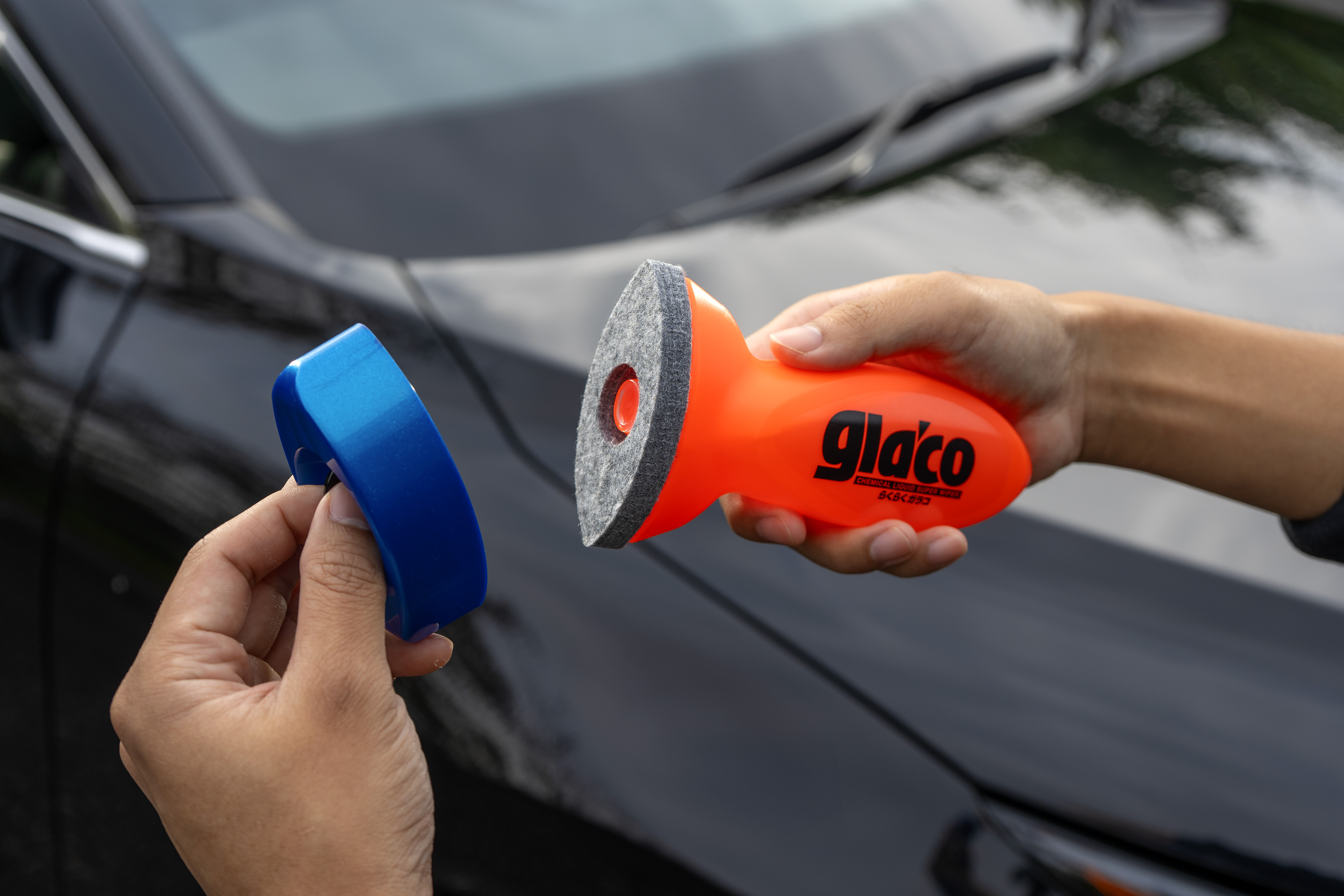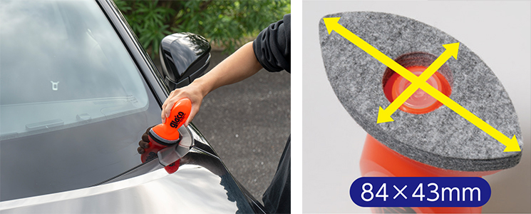 どのようなフロントガラスの形状でも隅々までしっかり塗れる新型ヘッド。フェルトの面積が大きいため塗り残しもなくスピーディに仕上げることが可能です。