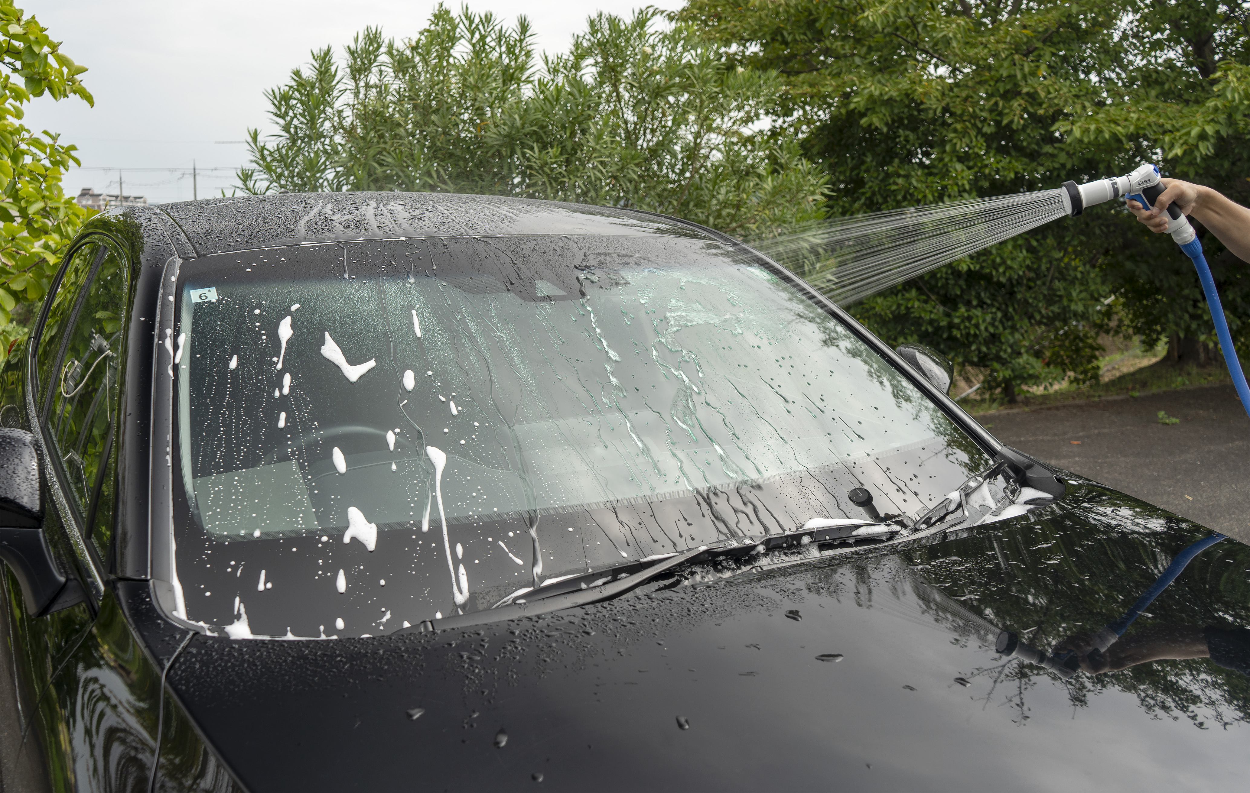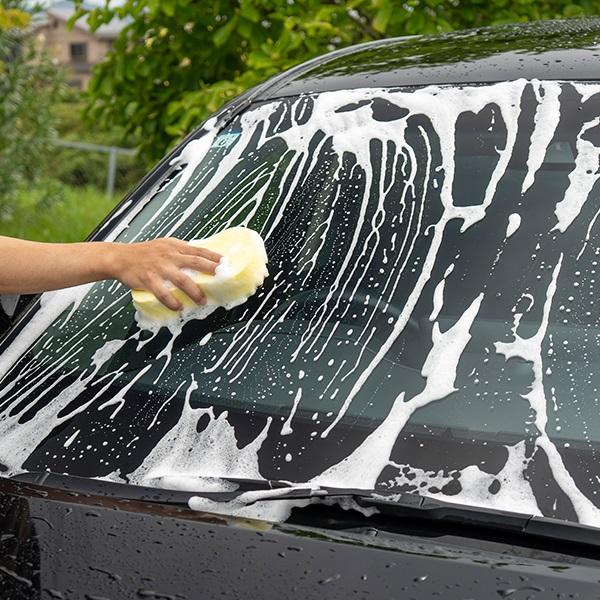 中性ノーマルカーシャンプーを使用して洗車用のスポンジなどで施工面全体を洗浄する。