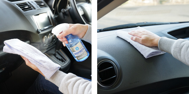 スプレーして拭き上げるだけで、目には見えない菌やウイルスをスパッと除去。普段何気なく触れる、ハンドル(本革除く)や窓ガラスなど、車内の様々な箇所にご利用いただけます。※すべての菌・ウイルスに効果があるわけではありません。