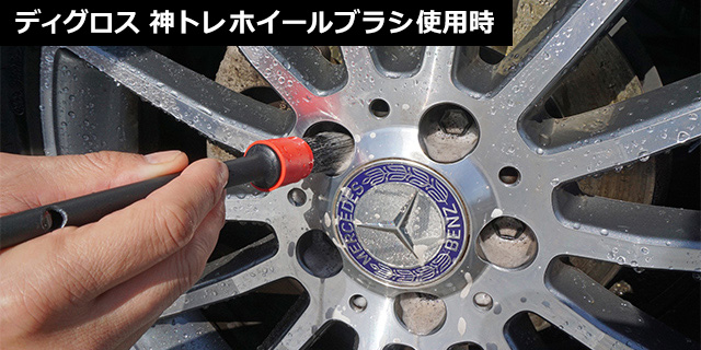 『ディグロス 神トレホイールスポンジ』『ディグロス 神トレホイールブラシ』の併用で、ホイールのスキマ汚れもしっかり洗浄。