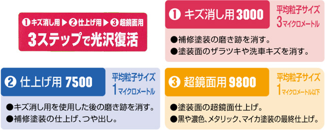 キズ消しから超鏡面仕上げまでできる 便利セット!