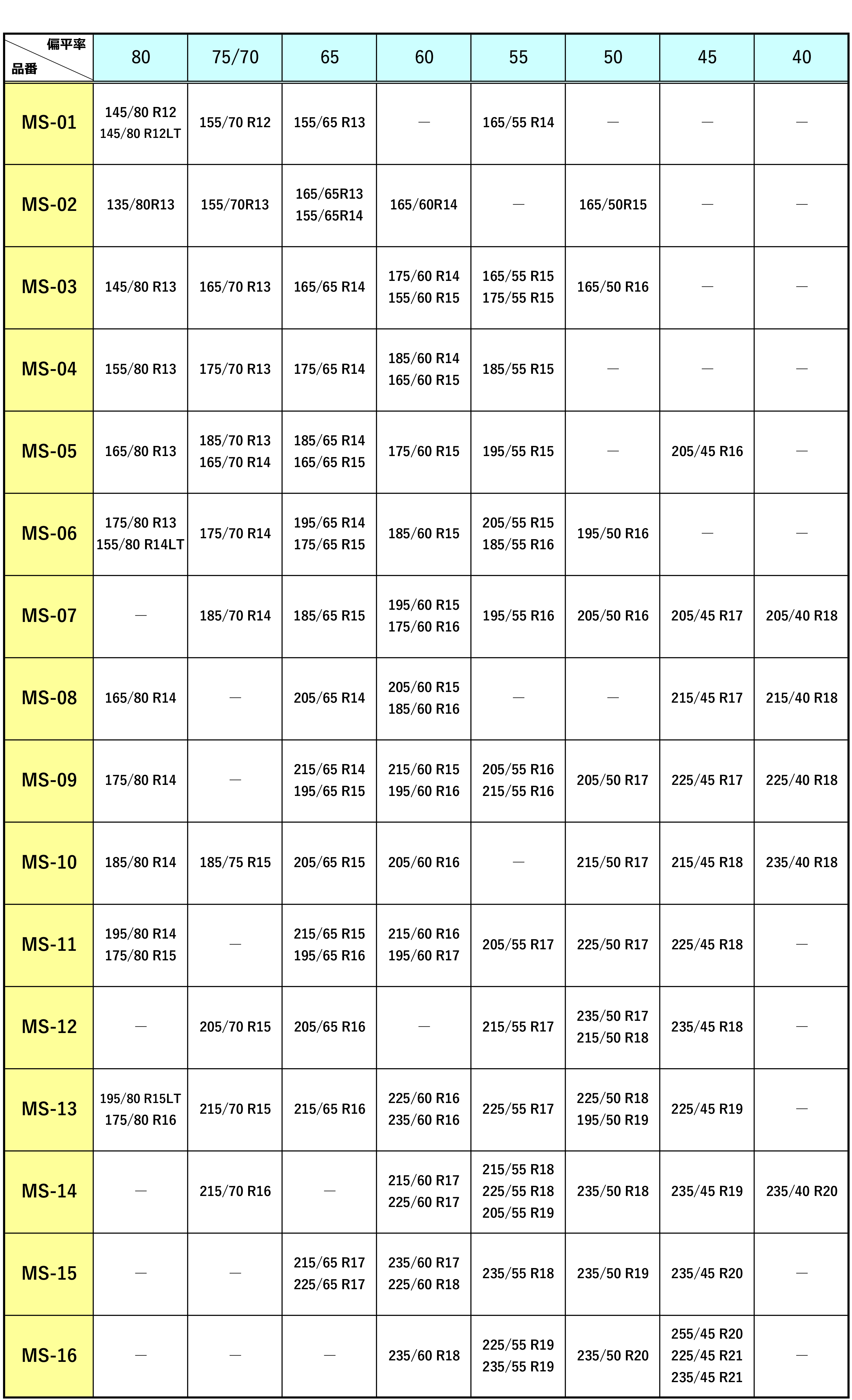 例)155/70 R13の場合 = MS-02が適合となります。