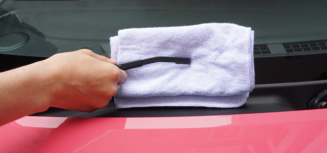 一旦ガラスの水分を拭き上げガラスが乾燥した状態で、ワイパーを5分間作動させます。