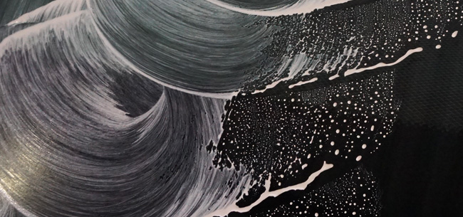 液剤が乾かないように液量を調節しながら、液の弾きがなくなるまで磨きます。