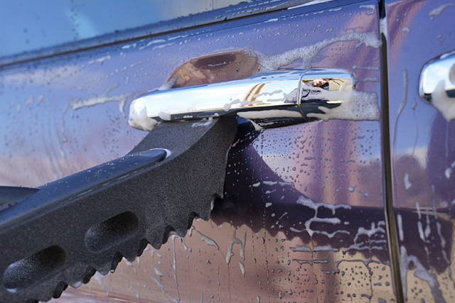 一般的なスポンジだと届きにくいルーフも、このとおり楽に届いて一気に洗うことが可能です。