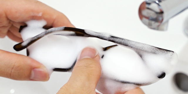 通常商品と少し異なる「もっちもちの泡」でメガネをスッキリと洗い上げます。