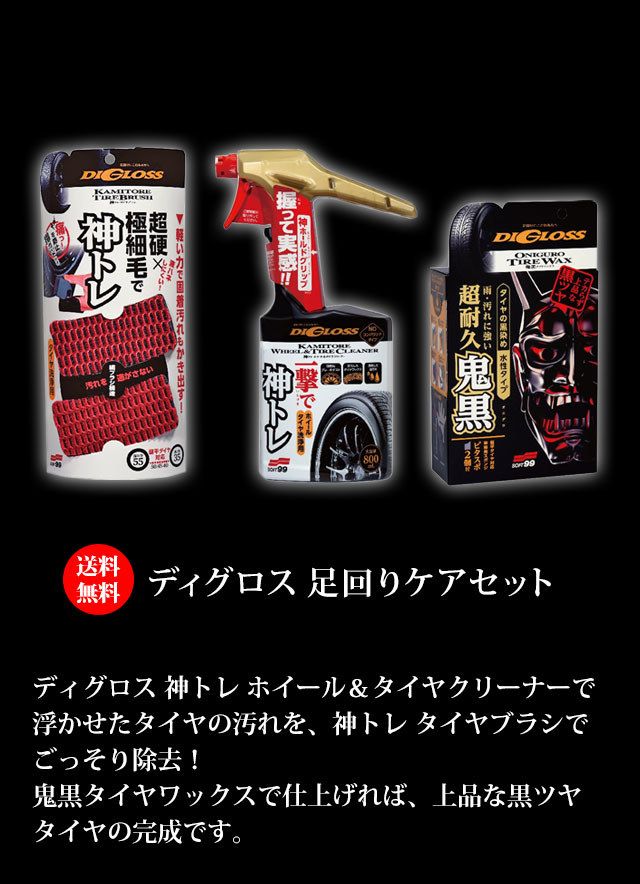 なお、タイヤ洗浄後におススメのタイヤワックス『ディグロス 鬼黒タイヤワックス』は、こちらからご確認ください。