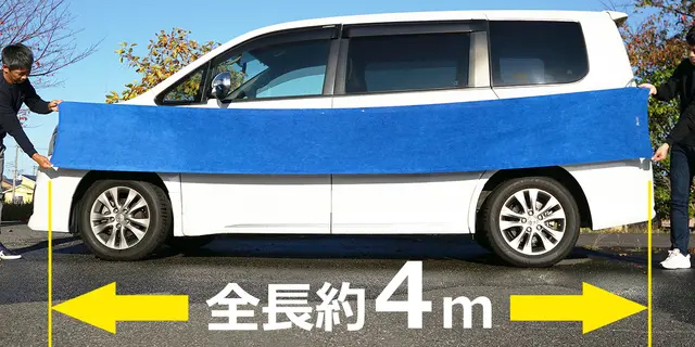 車をルーフごと包み込む、全長約4mの超ロングサイズ