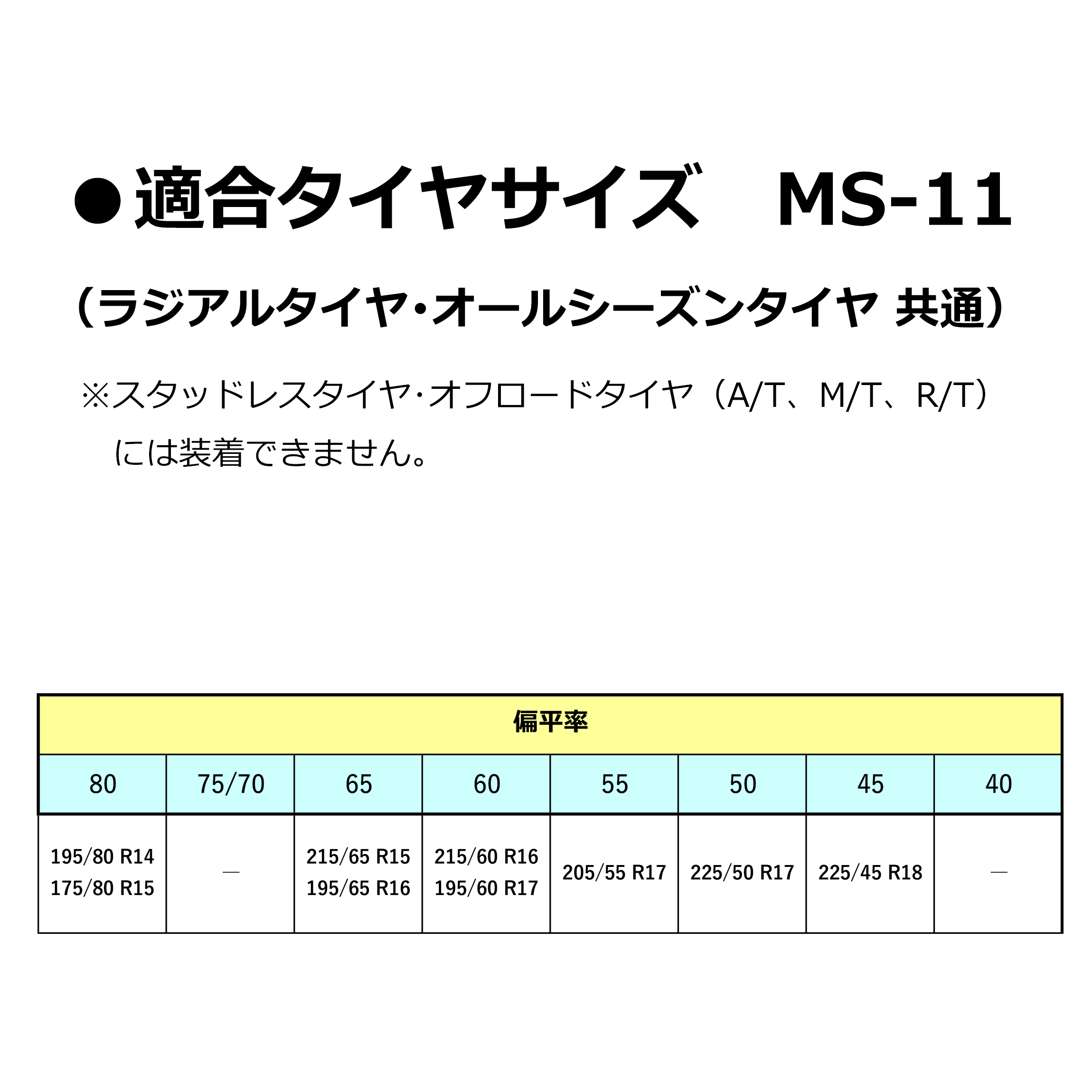 ●タイヤサイズに適合した品番であることをご確認ください。また、タイヤサイズが同じでもメーカーやブランドによって装着困難なケースがありますので、ご使用前に着脱練習も兼ねて必ずテスト装着を行ってください。