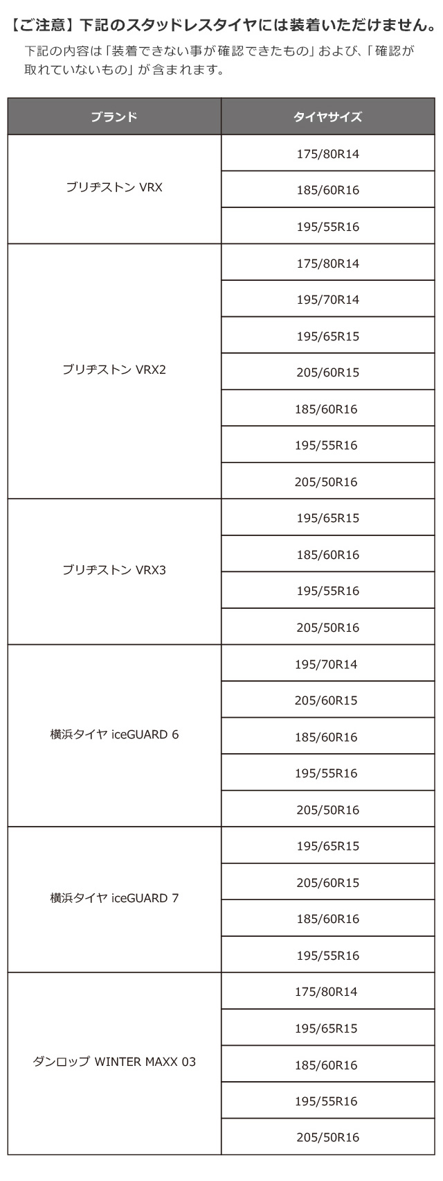 Q一部タイヤ(スタッドレスタイヤ)への装着が不可とありますが、なぜでしょうか?